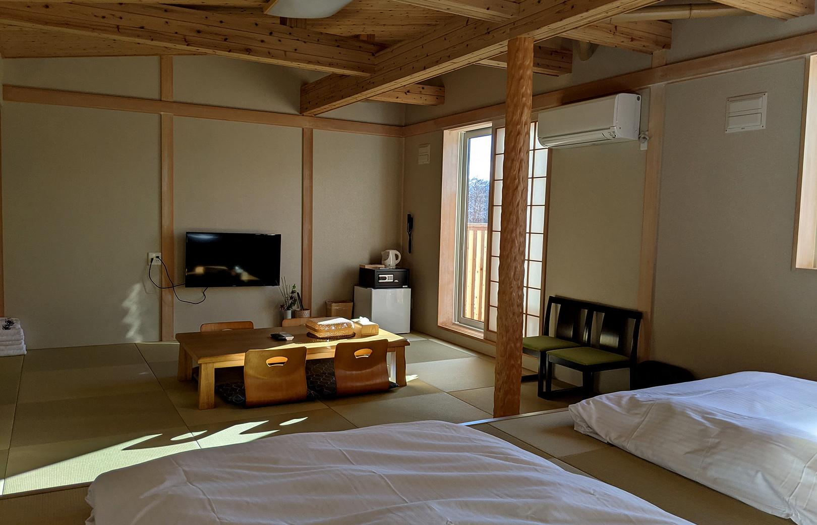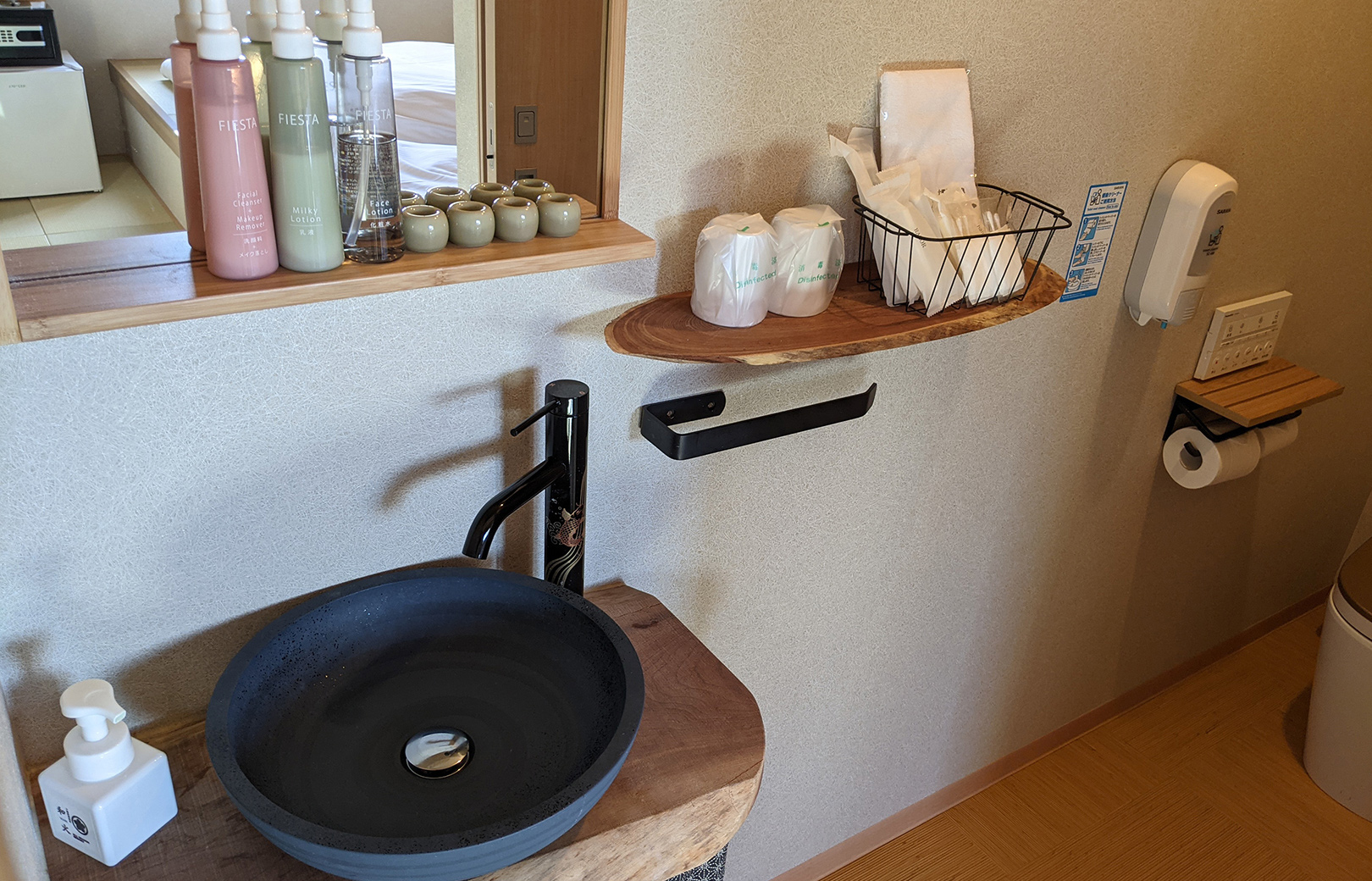 - 個別にお風呂はついていないため、1階の温泉をご利用ください。